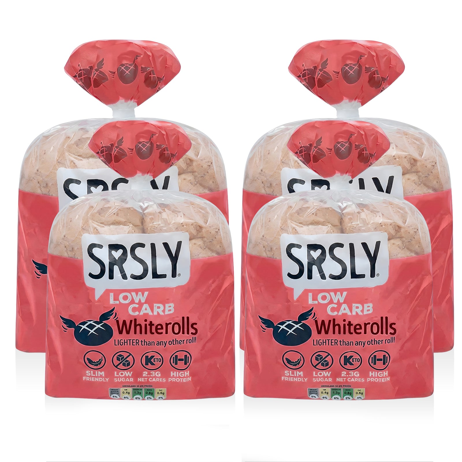 Each pack comprises 4 x 50g SRSLY Low Carb Hot Dog Rolls.
