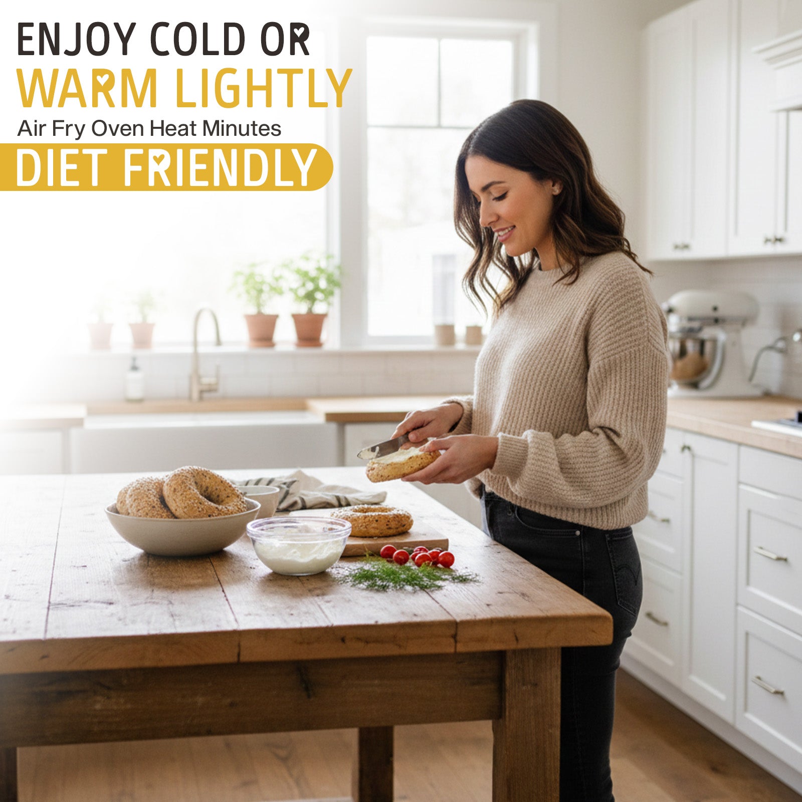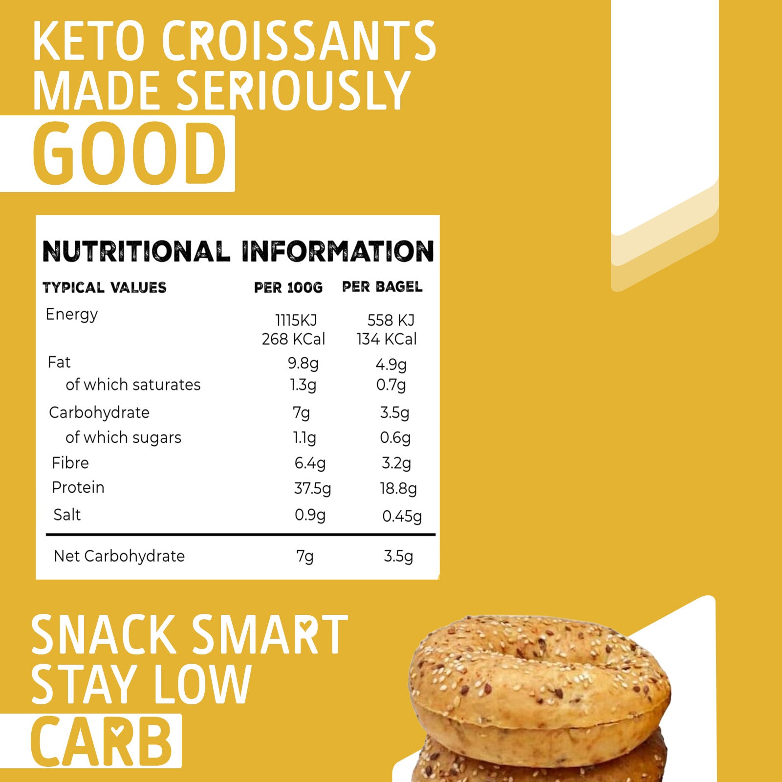 - Remarkable Carb Reduction: Standard bagels can load you with 45-55g of carbs per 100g, but our Low Carb version offers 7g net carbs per 100g. That translates to just 3.5g of net carbs in a single bagel.